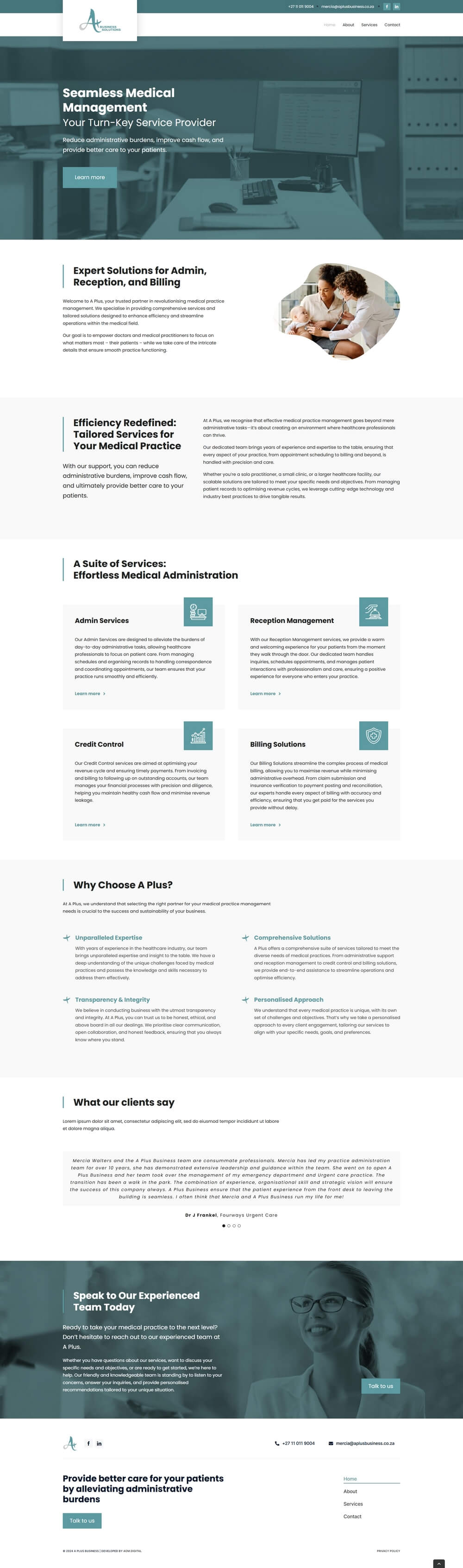 A Plus offers administration solutions for medical practices. They offer turn-key solutions including billing, reception, credit control and other admin tasks for medical practices for doctors to focus on their patients.
